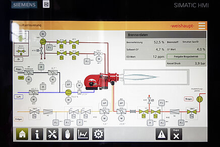 Brännaren levererades även med den digitala förbränningsprocessorn W-FM1000 CMS, som är tillverkad och testad av Weishaupt. W-FM1000 visas och manövreras via en pekskärm.